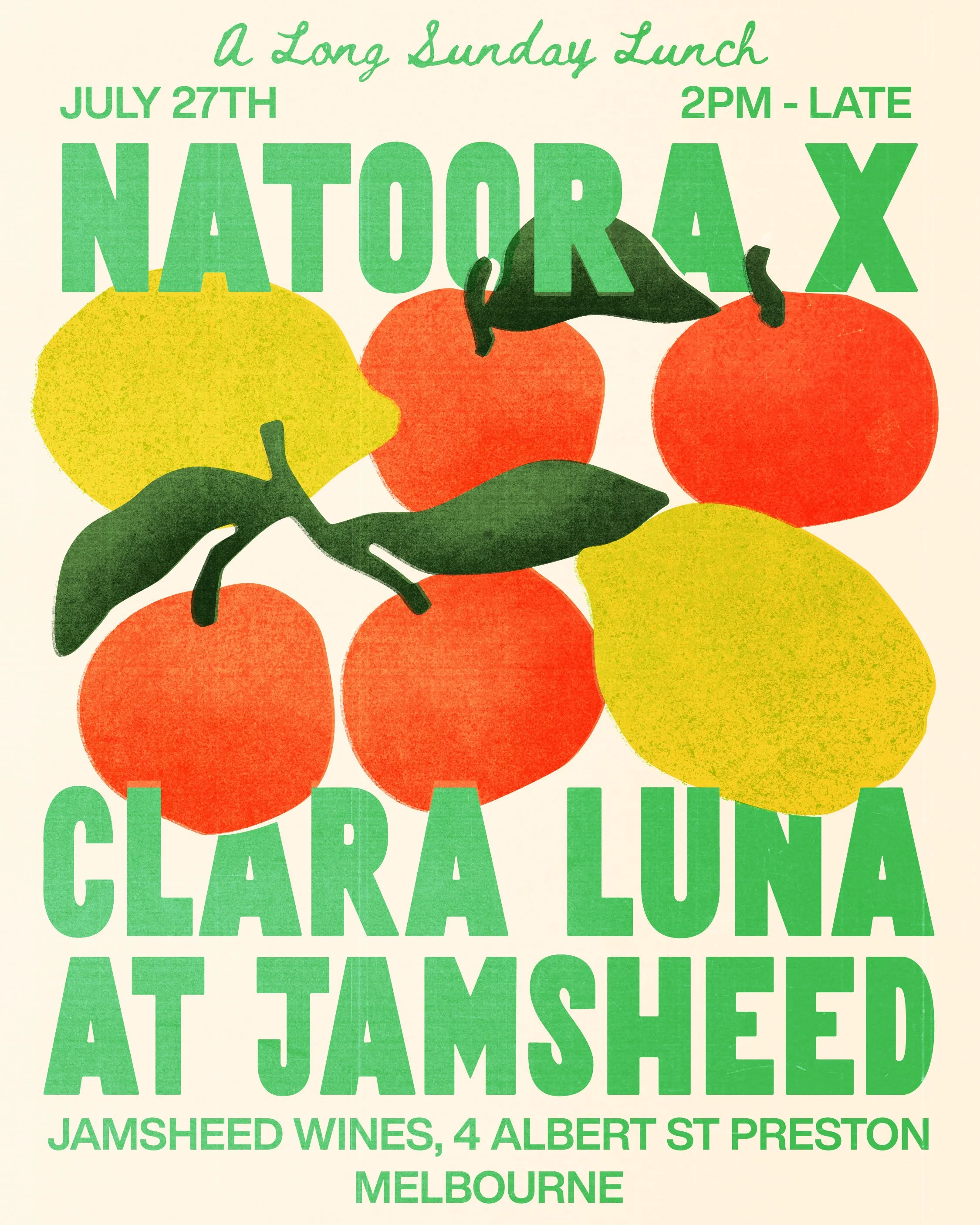 $85 Per person, with $20 of the ticket price being donated to Natoora’s Farm Fund, supporting the next generation of soil and flavour focused farmers.